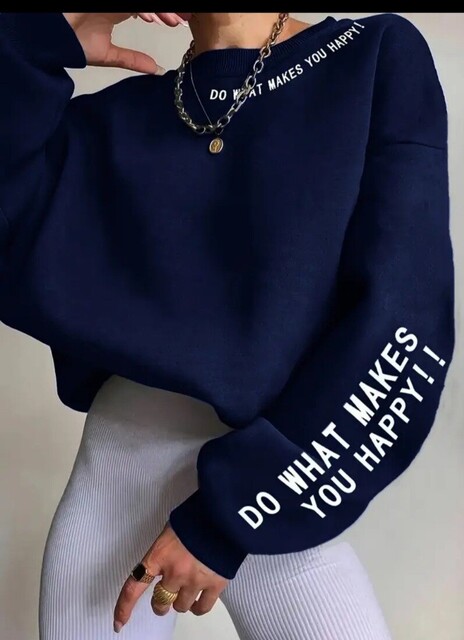 Мотиваційний светр з написом "РОБИ ТЕ, ЩО РАДУЄ ТЕ!" – Темно-синій пуловер розслабленого крою, затишний повсякденний светр для осені/зими, тепла тканина